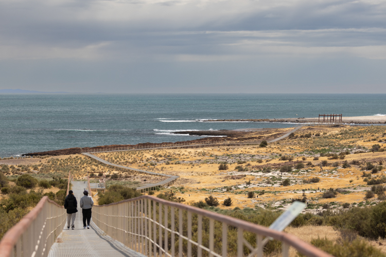 Camarones es la puerta de entrada al Parque Interjurisdiccional Marino-Costero Patagonia Austral, donde se encuentra el Área Natural Protegida de Cabo Dos Bahías, una reserva poco visitada que cuenta con una diversidad faunística inusual, en medio de una geografía de caletas y playas de todo tipo . Además de una colonia de pingüinos de Magallanes, se pueden observar lobos marinos, cormoranes, guanacos, ñandúes y zorros grises, entre otras tantas especies.