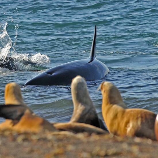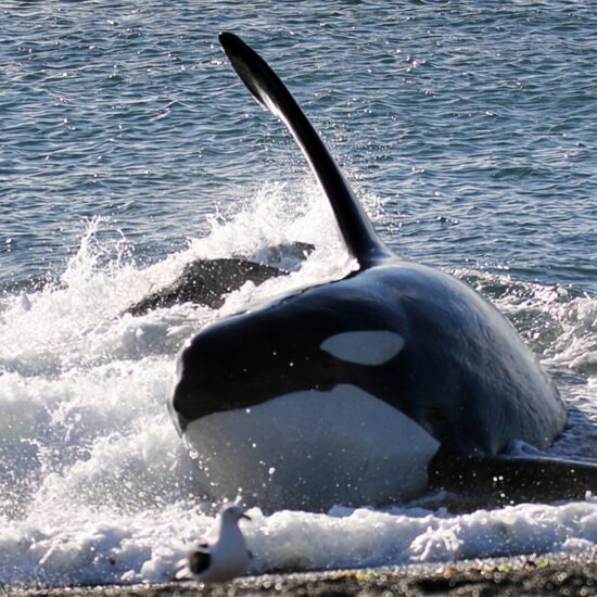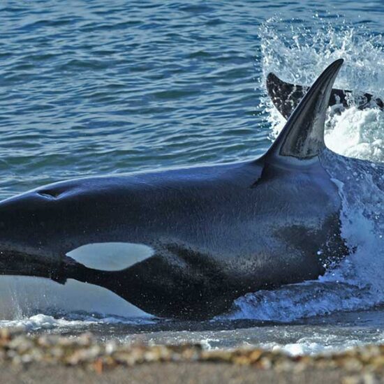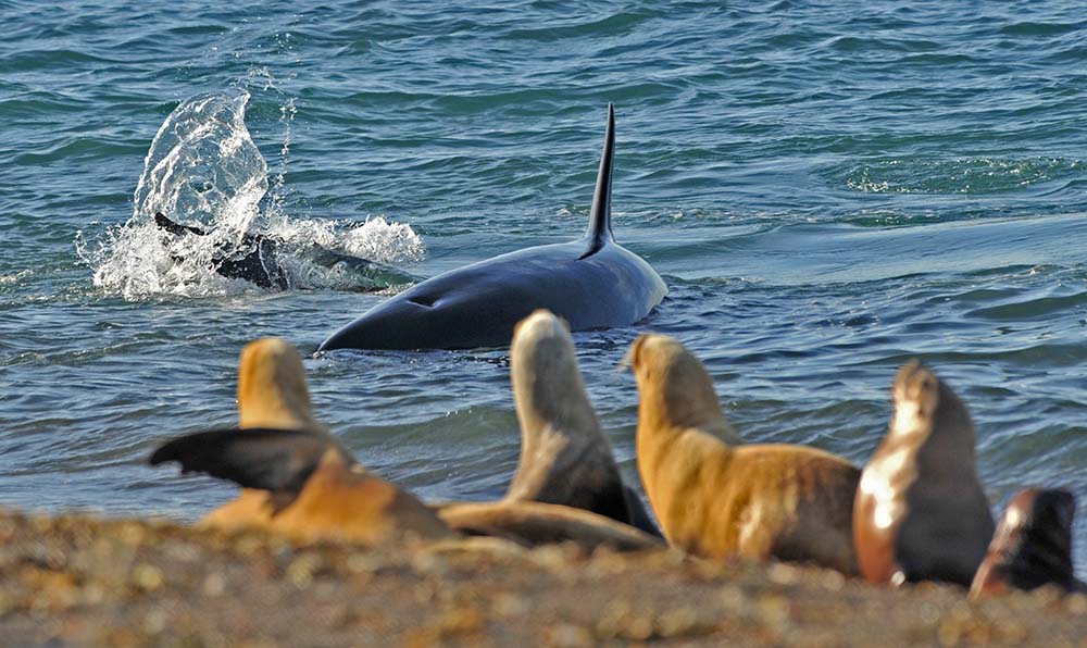 Todos los años, de marzo a mayo y en octubre y noviembre, Península Valdés es el escenario de una de las conductas predatorias más espectaculares de la vida salvaje en el planeta: el “varamiento intencional” de orcas para cazar crías de lobos o elefantes marinos, impulsando sus cuerpos afuera del agua en marea alta.
